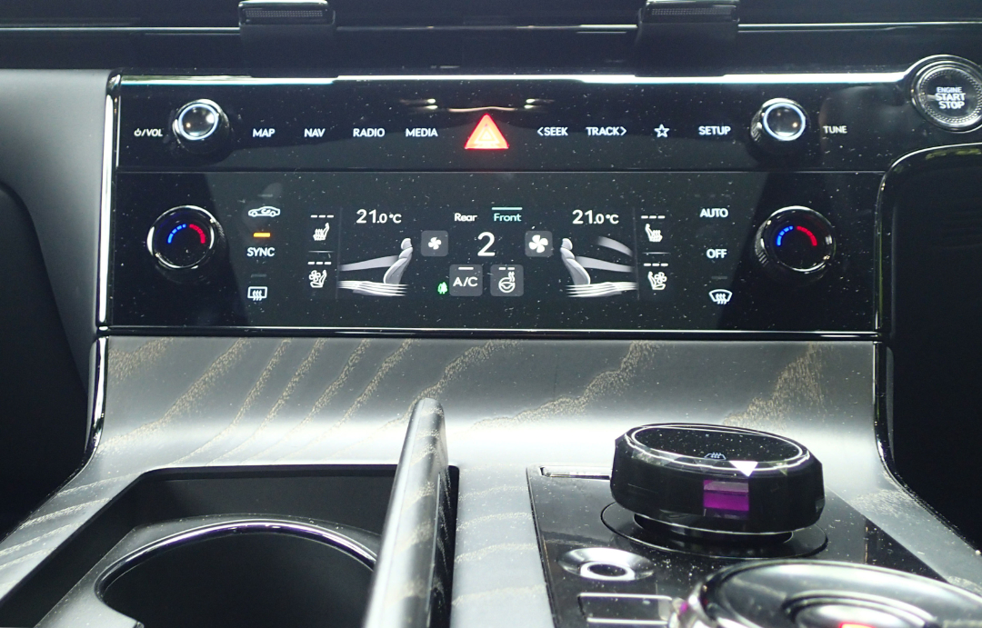 - I love the feel of the jewel-like gear selector. I also love that there's a separate controller for the Apple CarPlay / Android Auto screen.