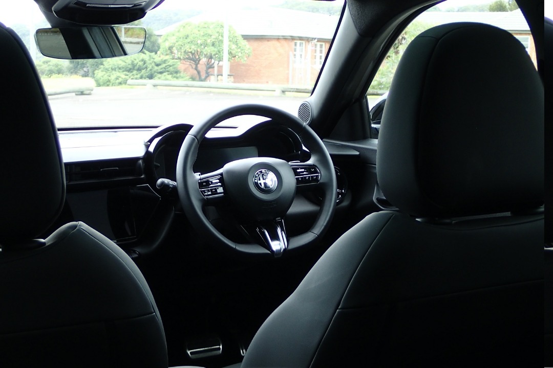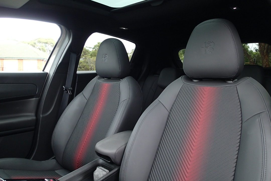Up front, the dual 10.25-inch screens dominate: a reconfigurable Cannocchiale digital cluster and a crisp touchscreen infotainment system that's easy to read and reach, even gloved. Wireless Apple CarPlay and Android Auto are seamless, navigation is standard via Alfa Connected services, and single-zone auto climate control with touch controls keeps things cool in 35°C heat.
